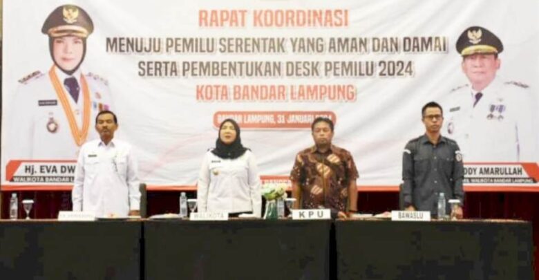 Wali Kota Bandar Lampung Eva Dwiana, saat menghadiri rapat koordinasi bersama penyelenggara Pemiliu, di Hotel Horison Bandar Lampung, Rabu, 31 Januari 2024. ISTIMEWA