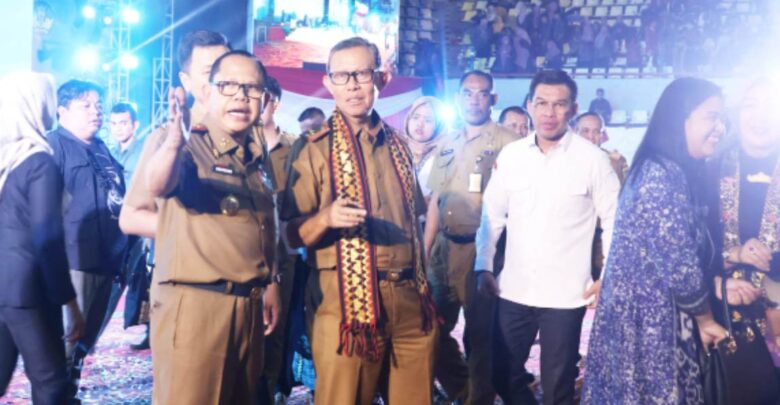 Kepala Disdikbud Lampung, Dr. Drs. Sulpakar, M.M, bersama Sekretaris Daerah Lampung Ir. Fahrizal Darminto, M.A, pada pembukaan LKS SMK XXXII baru-baru ini. DOK