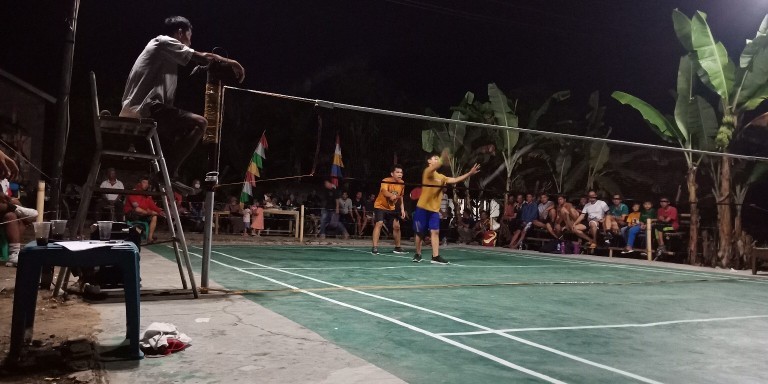 “saat ini masih berlangsung babak penyisihan. Dimana, pertandingan ini diikuti oleh para peserta yang tergabung dalam beberapa tim seperti PB.Tringginas, PB. Anagata dari Desa Sukaraja maupun Sukabakti. Nantinya, tim yang memenangkan pertandingan ini akan mendapatkan hadiah uang tunai dan piala dari paniti,”ujar Andre