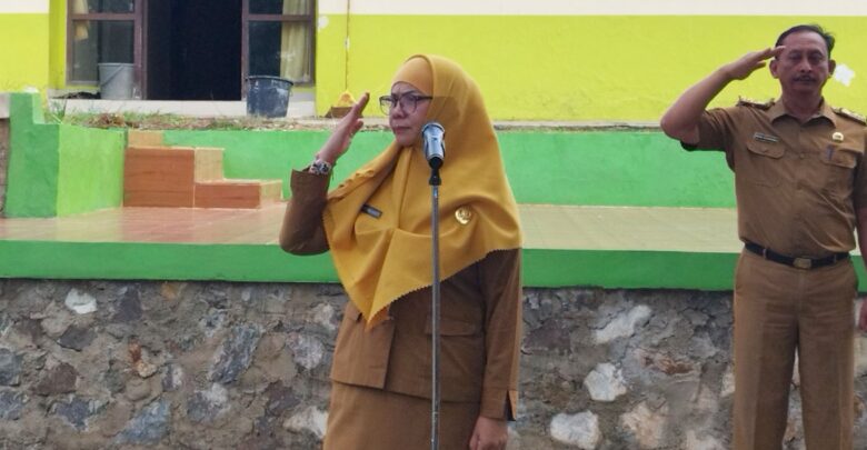 Kepala Disdikbud Bandar Lampung, Hj. Eka Afriana, S.Pd, saat menjadi pembina apel di lapangan dinas setempat, Senin, 12 Februari 2024. DOK DISDIKBUD