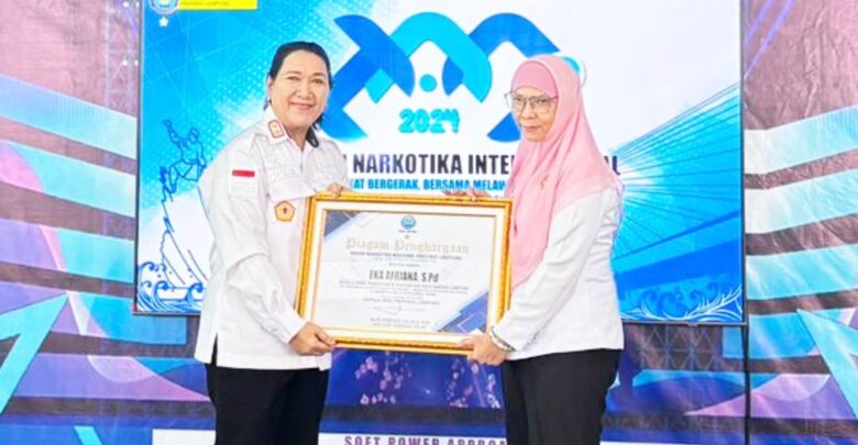 Penghargaan tersebut diberikan oleh Kepala Badan Narkotika Nasional Provinsi (BNNP) Lampung, Brigjen. Pol. Budi Wibowo, S.H., S.I.K., M.H, dalam rangka memperingati Hari Anti Narkotika Nasional (HANI).