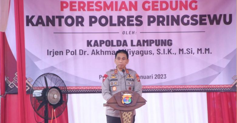 Kapolda Lampung Irjen Polisi Akhmad Wiyagus, saat meresmikan Polres Pringsewu, di Komplek Perkantoran Pemkab Pringsewu, Selasa, 31 Januari 2023. FOTO: SMARTNEWS.ID/ ARIYANTO