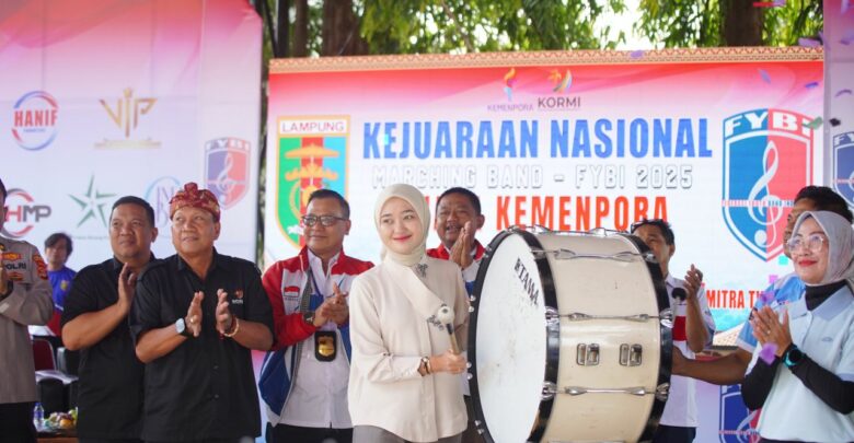 SMARTNEWS.ID – Wakil Gubernur Jihan Nurlela secara resmi membuka Kejuaraan Nasional (Kejurnas) Marching Band Federasi Youth Band Indonesia (FYBI) Piala Kementerian Pemuda dan Olahraga (Kemenpora) Tahun 2025, di Lapangan Korpri – Halaman Kantor Gubernur Lampung, Sabtu, 25 Oktober 2025.
