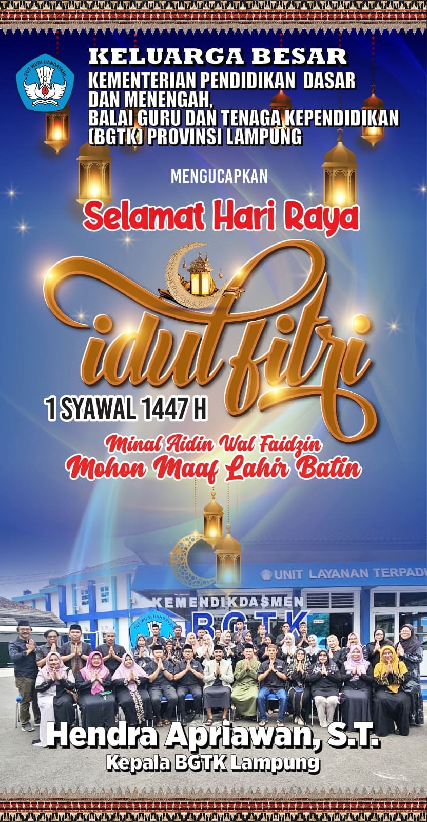 Keluarga Besar BGTK Provinsi Lampung Mengucapkan Selamat Hari Raya Idulfitri 1447 H/ 2026 M