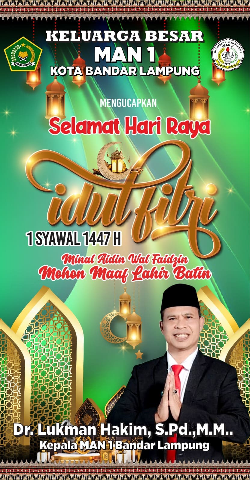 Keluarga Besar MAN 1 Bandar Lampung Mengucapkan Selamat Hari Raya Idulfitri 1447 H/ 2026 M