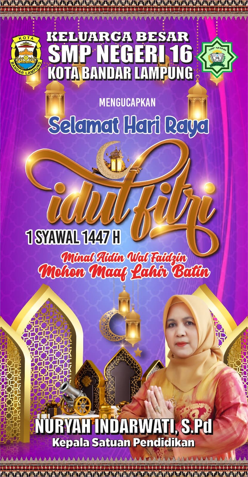 Keluarga Besar SMPN 16 Bandar Lampung Mengucapkan Selamat Hari Raya Idulfitri 1447 H/ 2026 M