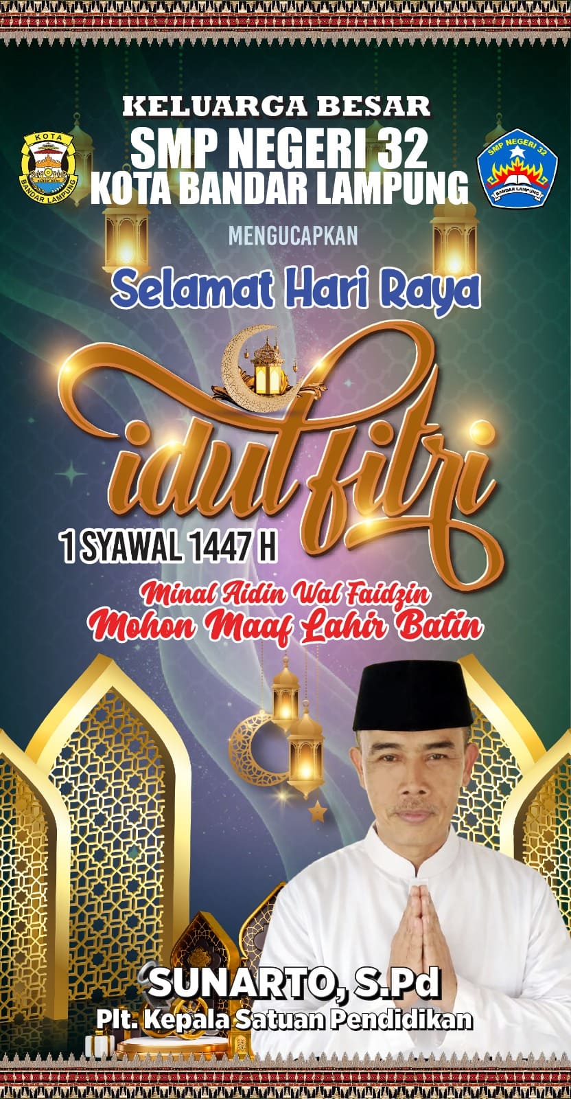 Keluarga Besar SMPN 32 Bandar Lampung Mengucapkan Selamat Hari Raya Idulfitri 1447 H/ 2026 M