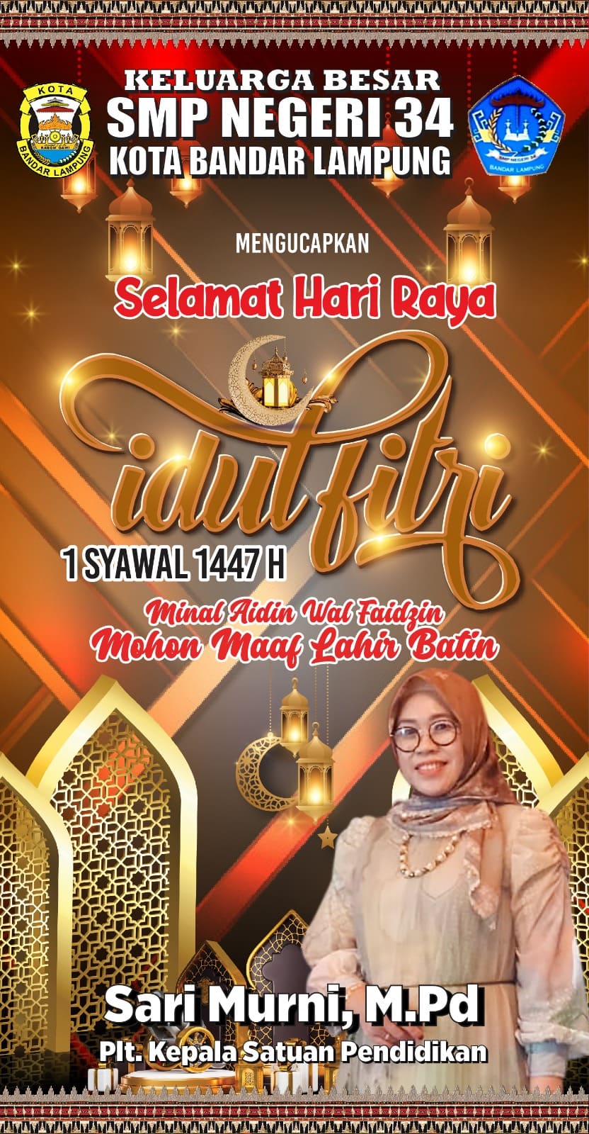 Keluarga Besar SMPN 34 Bandar Lampung Mengucapkan Selamat Hari Raya Idulfitri 1447 H/ 2026 M