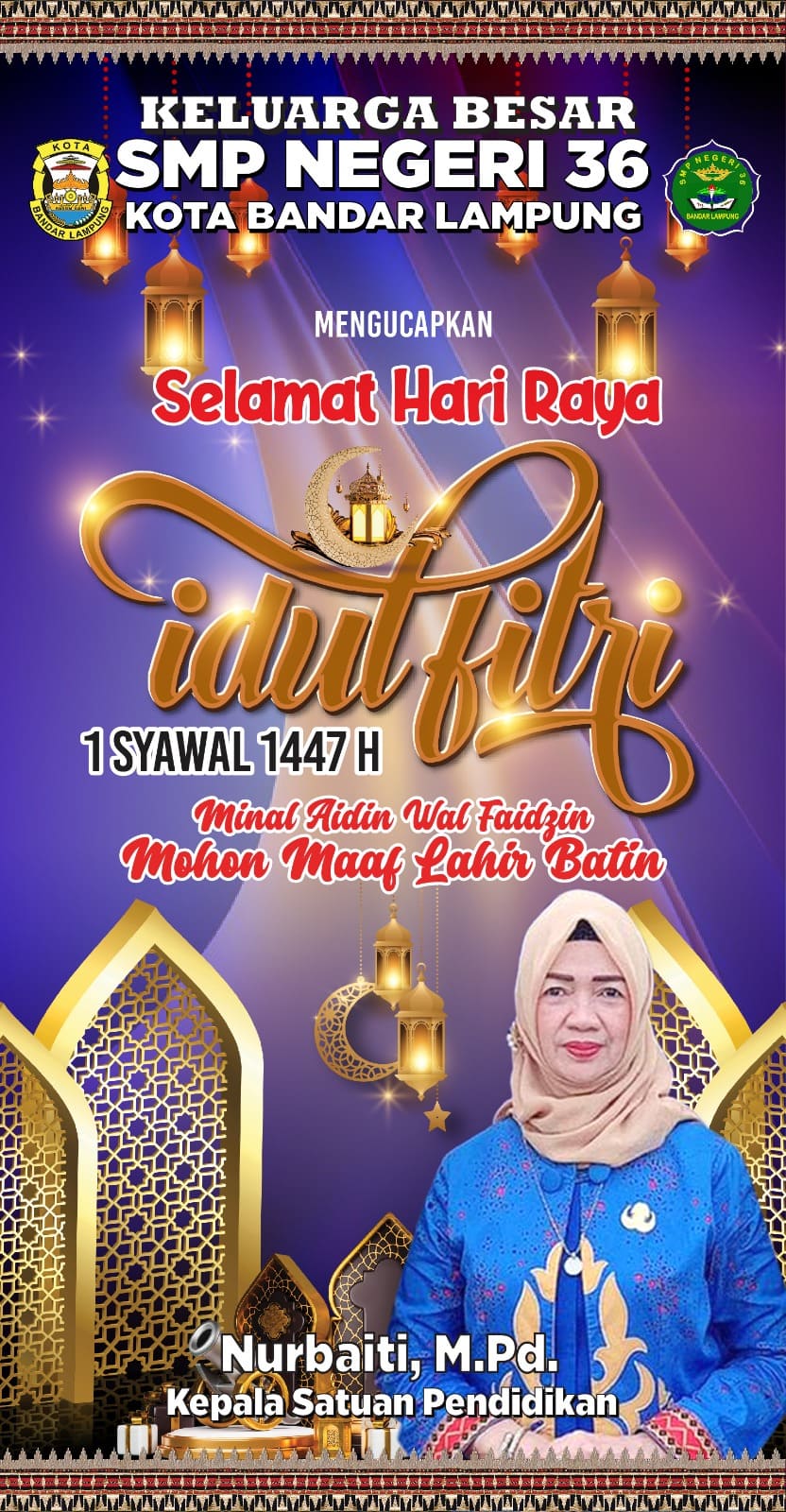 Keluarga Besar SMPN 36 Bandar Lampung Mengucapkan Selamat Hari Raya Idulfitri 1447 H/ 2026 M