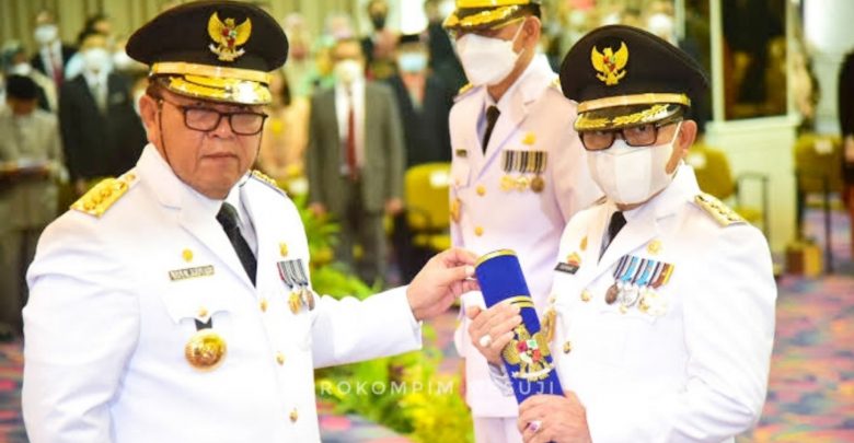 Gubernur Lampung Arinal Djunaidi, melantik dan mengambil sumpah jabatan Drs. Sulpakar, M.M, sebagai Penjabat Bupati Mesuji, di Balai Keratun, Bandar Lampung, Minggu, 22 Mei 2022. DOk