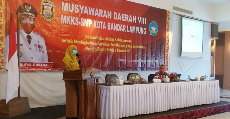 SMARTNEWS.ID – Kepala Dinas Pendidikan dan Kebudayaan Kota Bandar Lampung, Hj. Eka Afriana, S.Pd, membuka Musyawarah Daerah VIII MKKS SMP Kota Bandar Lampung, di Begadang Resto Telukbetung, Bandar Lampung, Senin (14/3/2022).