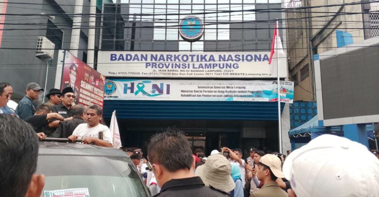 SMARTNEWS.ID – Ratusan massa aksi menuntut mengusut tuntas terkait OTT pesta Narkoba Eks HIPMI dan pelaku lainnya dengan mendatangi gedung kantor Badan Narkotika Nasional Provinsi (BNNP) Lampung.
