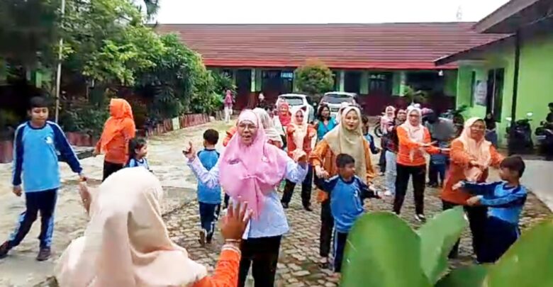 Tak hanya para anak dan tenaga pengajar sekolah setempat, senam sehat itupun juga diikuti Kepala Dinas Pendidikan dan Kebudayaan Kota Bandar Lampung, Hj. Eka Afriana, S.Pd.