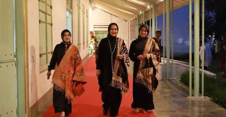 Dibalut pakaian khas Lampung, Ibu Riana Sari Arinal didampingi Sekretaris PKK Provinsi Lampung Fitrianita Damhuri, dan Wakil Ketua Pokja III TP PKK Provinsi Lampung Elismawati Febriza menghadiri Welcome Dinner di Pura Mangkunegaran yang dihadiri pula oleh Ibu Negara Iriana Jokowi yang nuga merupakan Pembina TP PKK. (***)