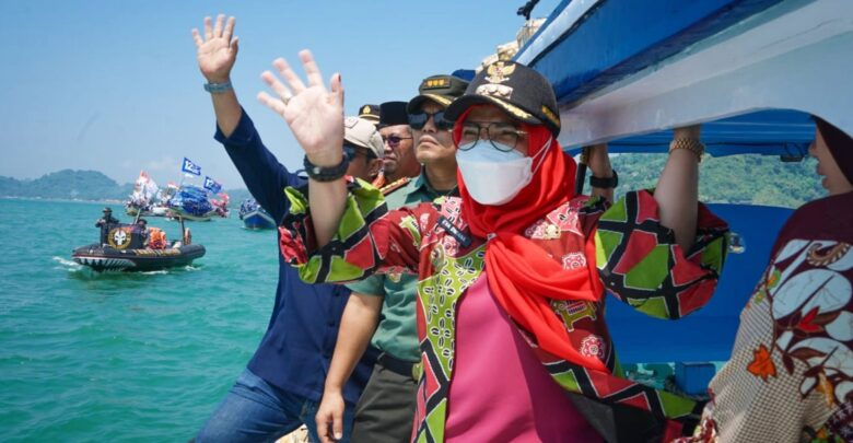 SMARTNEWS.ID – Wali Kota Bandar Lampung, Eva Dwiana lepas peserta Kirab Pemilu 2024 “Festival Perahu Demokrasi,” di PPI Lempasing, Kecamatan Telukbetung Timur, Kota Bandar Lampung, Provinsi Lampung, Kamis, 31 Agustus 2023.