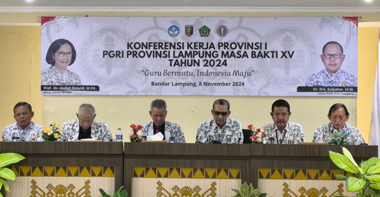 Konkerprov mengambil tema ‘Guru Bermutu, Indonesia Maju’ dengan dihadiri sejumlah pengurus dan anggota PGRI provinsi dan kabupaten/ kota se-Lampung, dibuka oleh Ketua PGRI Lampung, Dr. Drs. Sulpakar, M.M.