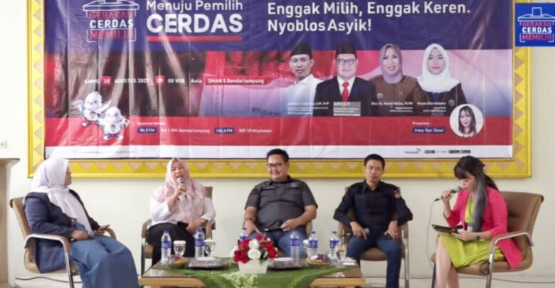 SMARTNEWS.ID – Komisi Pemilihan Umum (KPU) dan Badan Pengawas Pemilihan Umum (Bawaslu) Provinsi Lampung, menggandeng SMAN 5 Bandar Lampung melakukan dialog interaktif Menuju Pemilih Cerdas, di sekolah setempat, Kamis, 10 Agustus 2023.