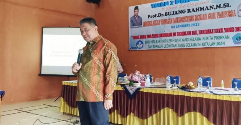 “Mengundang guru besar Unila Bapak Prof. Bujang Rahman, bagian dari meningkatkan wawasan dan kompetensi menjadi guru yang paripurna,” ujar Jumani Darjo, Selasa, 3 Januari 2023.