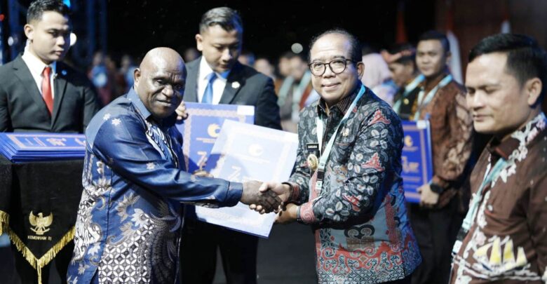 SMARTNEWS.ID – Penjabat Gubernur Lampung, Samsudin, menerima penghargaan Provinsi Pembina Kabupaten/Kota Peduli Hak Asasi Manusia (KKP HAM) Tahun 2024 dari Menteri Hak Asasi Manusia RI Natalius Pigai, dalam puncak peringatan Hari HAM Sedunia Ke-76 di Taman Mini Indonesia Indah, Selasa malam, 10 Desember 2024.