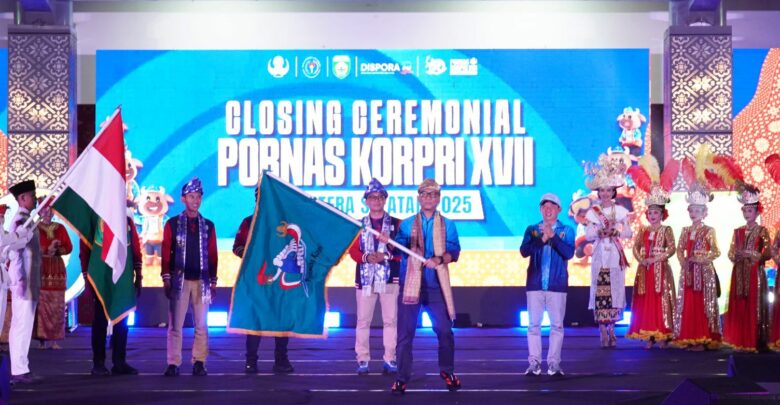 SMARTNEWS.ID – Provinsi Lampung resmi ditunjuk menjadi tuan rumah Pekan Olahraga Nasional (Pornas) Korpri XVIII Tahun 2027. Penetapan ini ditandai dengan penyerahan pataka atau bendera estafet dari Gubernur Sumatera Selatan, Herman Deru, kepada Gubernur Lampung Rahmat Mirzani Djausal dalam upacara penutupan Pornas Korpri XVII di Palembang, Sabtu, 11 Oktober 2025.