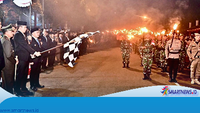Sorak-sorai warga langsung menggema, mengiringi langkah ribuan peserta dari berbagai kalangan—pelajar, organisasi kepemudaan, TNI/Polri, serta perwakilan instansi pemerintah—yang menyusuri rute pawai dengan obor menyala di tangan.
