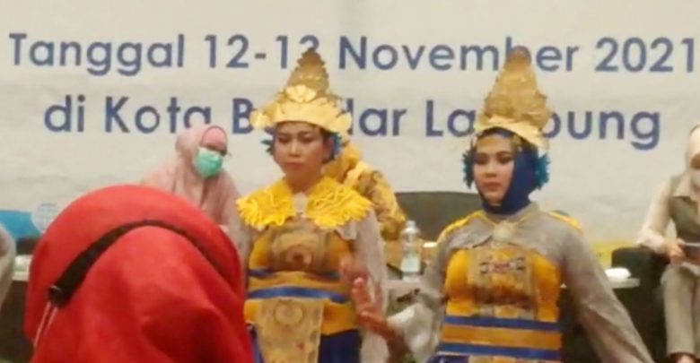 Plt. Kepala Disdikbud Bandar Lampung Eka Afriana (masker hijau), saat menyaksikan tarian yang dibawakan sejumlah penari, pada kegiatan Lokakarya 7 PGP Angkatan Ke-2 yang digelar PPPPTK Matematika, Kemendikbudristek, di Hotel Novotel Lampung, Sabtu (13/11/2021). ISTIMEWA