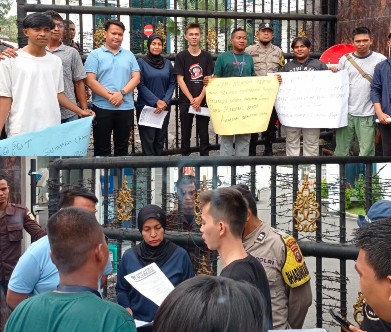 Puluhan anggota LPIB ini menggelar aksinya di depan Kantor Kejatisu berlangsung dengan damai. Dimana, dalam aksinya puluhan masa ini membawa berbagai macam spanduk bertuliskan ‘Tangkap Kakanwil Kemenagsu dan Kajati Jangan Tidur, Kejatisu Bukan Tempat Loby Kasus’.