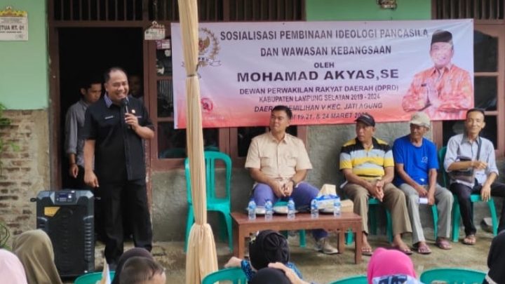 SMARTNEWS.ID – – Anggota DPRD Lampung Selatan dari Fraksi PKS yang duduk kursi komisi I, Mohamad Akyas kembali menyapa warga dalam rangka mensosialisasikan Idiologi Pancasila dan Wawasan Kebangsaan (IPWK) di hari Kedua yang dipusatkan di Desa Karang Sari Kecamatan Jatiagung, Senin (21/3/2023)