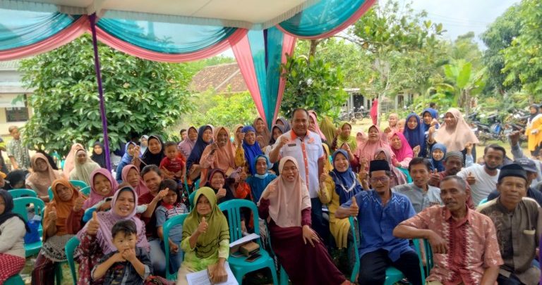 Anggota DPRD Lampung Selatan, M. Akyas, berbaur bersama lapisan masyarakat saat mensosialisasikan wawasan kebangsaan bersama masyarakat Desa Banjar Agung, Kecamatan Jati Agung, Lampung Selatan. Minggu (19/02/2023). FHOTO : SMARTNEWS.ID/***
