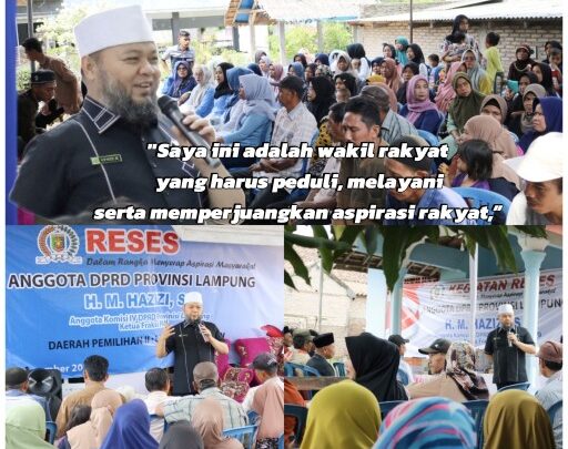 SMARTNEWS.ID – Untuk menyerap aspirasi dan kepentingan masyarakat, Anggota DPRD Provinsi Lampung Komisi IV dari Fraksi Partai Amanat Nasional (PAN), M. Haizizi, kembali melakukan kegiatan Reses. Nantinya, hasil Reses yang dilaksanakan itu, akan dibawa oleh M. Hazizi ke DPRD Provinsi Lampung, untuk diperjuangkan dan disampaikan sesuai dengan keinginan masyarakat, Sabtu, 16 November 2024