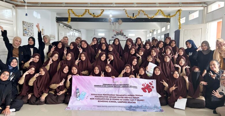 SMARTNEWS.ID – Mahasiswa Program Studi Farmasi Institut Teknologi Sumatera (ITERA) melaksanakan sosialisasi Pencegahan Anemia dengan Memanfaatkan Infused Water dari Jahe, Jeruk Nipis, dan Kurma sebagai Obat Terapi Non-Farmakologi, pada 11 November 2023, di SMP IT Az Zahra Islamic Boarding School.