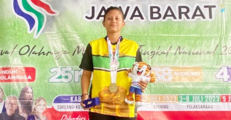 Indah Febriyani berhasil bersaing dengan 15 peserta lainnya dan berhasil membawa pulang medali emas untuk cabor YPOK kelas kata perorangan putri.
