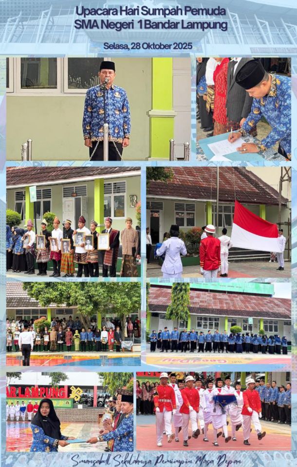 SMARTNEWS.ID – Peringatan Hari Sumpah Pemuda (HSP) ke-97 tahun 2025, di SMAN 1 Bandar Lampung, berlangsung khidmat, Selasa, 28 Oktober 2025. Tak hanya upacara, pada peringatan hari itu juga dilakukan deklarasi yang diikuti siswa dan guru.