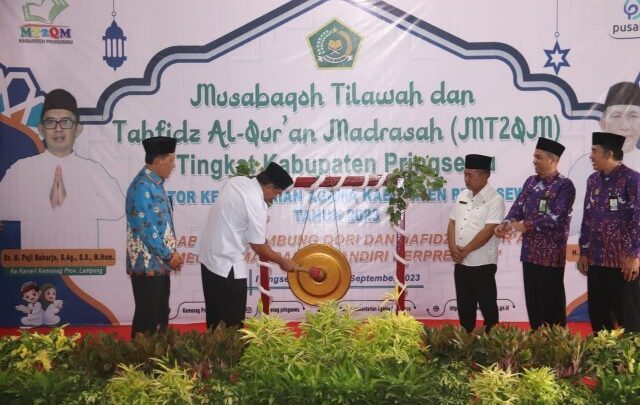 SMARTNEWS.ID – Sebanyak 222 peserta mengikuti Musabaqah Tilawah dan Tahfidz Al-Quran Madrasah (MT2QM) Tingkat Kabupaten Pringsewu 2023. MT2QM Kabupaten Pringsewu itu direncanakan berlangsung selama dua hari (20-21 September 2023), dibuka langsung oleh Sekretaris Daerah Kabupaten Pringsewu Heri Iswahyudi.
