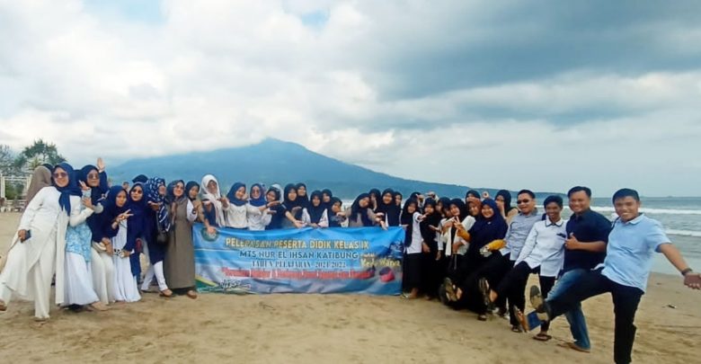 SMARTNEWS.ID – Madrasah Tsanawiyah (MTs) Nur El Ihsan, Desa Pardasuka, Kecamatan Katibung, Kabupaten Lampung Selatan, melepas sebanyak 80 orang siswa tahun pelajaran 2022/2023, di Pantai Kedu Kalianda, Kamis (16/6/2022).