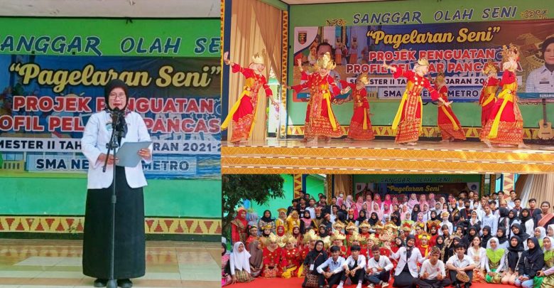 SMARTNEWS.ID – SMA Negeri 6 Metro sukses menggelar proyek penguatan Profil Pelajar Pancasila, Rabu, 8 Juni 2022. Proyek ini mengambil tema “Kearifan Lokal” dengan Sub Tema ‘Pagelaran Seni.’ Proyek Ini adalah proyek keempat setelah sebelumnya tiga proyek yang sudah dilakukan yaitu pembuatan pakan permentasi rusa, fenomena bullying, dan pembuatan roti manis.
