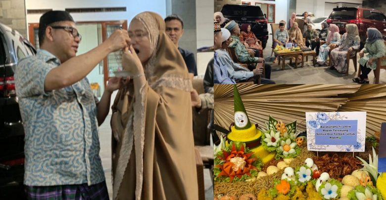 Sulpakar yang pagi itu ditemani istri tercinta Pori Karlia dan keluarga lainnya, benar-benar bahagia. Ia juga terlihat memberikan potongan pertama nasi tumpeng kepada istrinya.