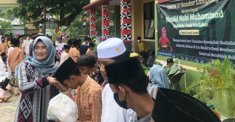 SMARTNEWS.ID – Peringatan Maulid Nabi Muhammad Saw 1444 Hijriah, di UPT SMPN 37 Bandar Lampung, disambut gembira warga sekolah setempat, Jumat (14/10/2022).
