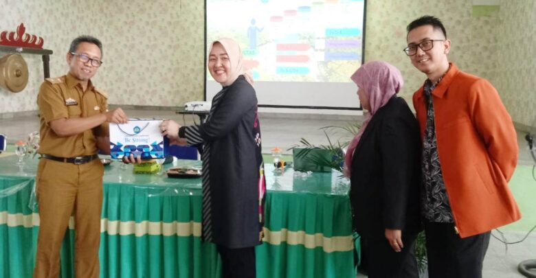 perwakilan SMAN 9 bandar Lampung menerima cendera mata dari Wakil Rektor Bidang Kemahasiswaan dan Alumni Unila, Dr. Anna Gustina Zainal, S.Sos., M.Si, pada kegiatan sosialisasi PMB, di SMAN 9, Selasa, 27 Februari 2024. DOK SEKOLAH