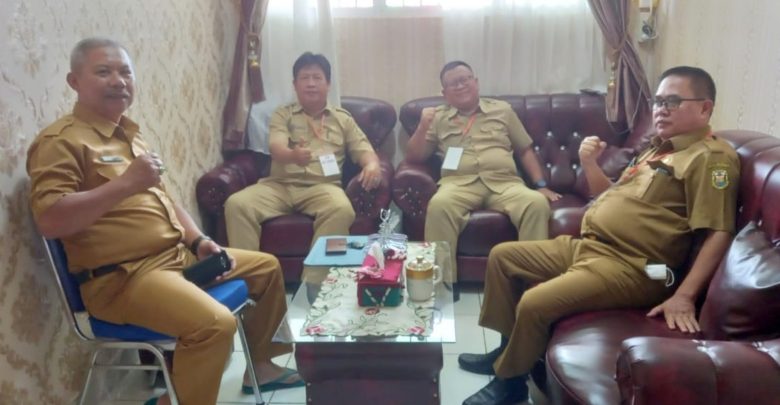 Tim monitoring dan evaluasi PPDB dari Disdikbud Bandar Lampung yang terdiri dari Kepala Seksi Kelembagaan Mulyadi, S.Sos, Pengawas SMP Heri, staf PAUD dan Dikmas Kamal, saat berbincang dengan Kepala SMPN 33 Bandar Lampung, terkait pelaksanaan PPDB di sekolah setempat, Selasa (12/7/2022). ISTIMEWA