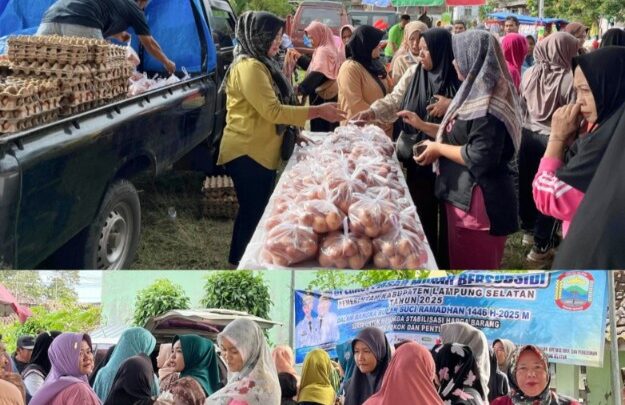Pasar murah digelar di dua tempat, yaitu Lapangan Galek Desa Sri Pendowo, Kecamatan Ketapang dan di Dusun Way Baka, Desa Kelawi, Kecamatan Bakauheni, Senin, 10 Maret 2025