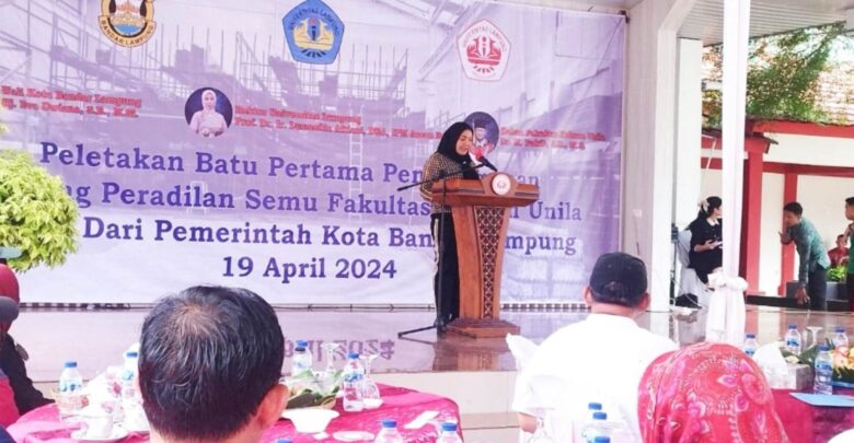 SMARTNEWS.ID – Wali Kota Bandar Lampung Eva Dwiana, meletakkan batu pertama pada pembangunan Gedung Peradilan Semu, di Kompleks Fakultas Hukum (FH) Universitas Lampung (Unila), Jumat, 19 April 2024.