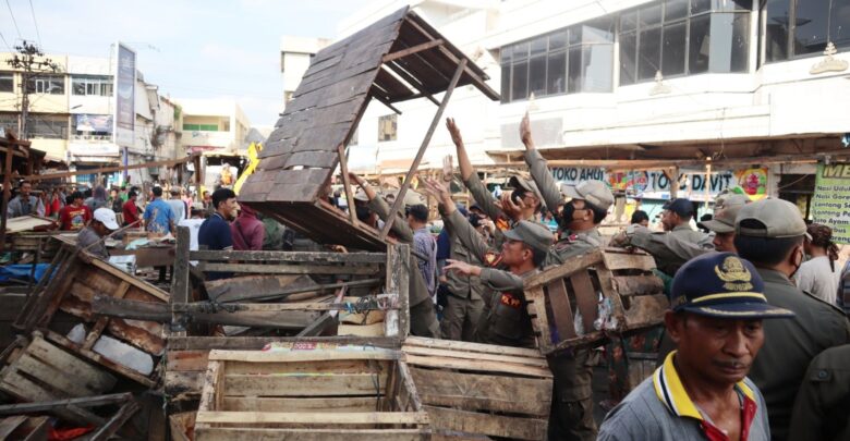 Proses pembongkaran pedagang di pasar pasir gintung yang dilakukan secara persuasif dan dipimpin langsung oleh Wakil Wali Kota Bandar Lampung, Dedy Amarullah.