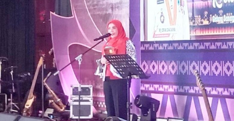 Tampak Wali Kota Eva Dwiana bersama artis Atik CB kompak membawakan lagu-lagu yang populer pada era 1980-1990, diantaranya Terserah Boy, Maafkanlah Daku, dan Nurlela.