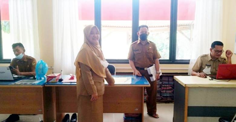 Sejumlah pegawai Seksi GTK Disdikbud Bandar Lampung, beraktivitas di ruang kerja. Pegawai tersebut yang melakukan pengolahan data TPG Bandar Lampung. DOK