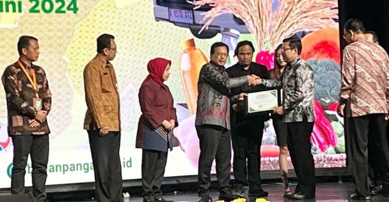 Penghargaan Rapid Response Pasar Pangan Aman Segar diserahkan langsung oleh Kepala Badan Pangan Nasional, Arif Prasetyo Adi kepada Kepala Dinas KPTPH Provinsi Lampung, Bani Ispriyanto.