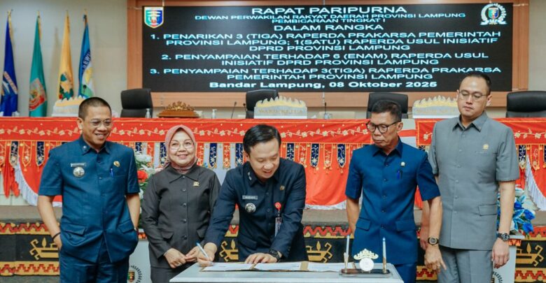 Enam Raperda yang diusulkan DPRD meliputi Raperda tentang Perizinan Pertambangan, Perlindungan dan Pemberdayaan Petani, Penerapan Pola Pengelolaan Keuangan Badan Layanan Umum Daerah (BLUD), Pengendalian Kawasan Keselamatan Operasional Penerbangan (KKOP) Bandara Radin Inten II, Pengelolaan dan Penyelenggaraan Mutu Pendidikan, serta Penyelenggaraan Satu Data Provinsi Lampung.