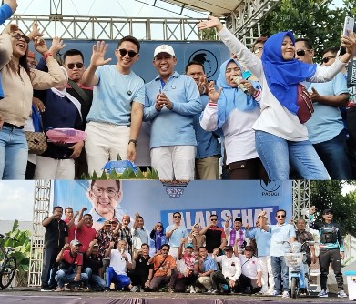 Nampak hadir dalam kegiatan jalan sehat itu Budi Setiawan sebagai LO, Sekretaris Tim Pemenangan Rusman Efendi, relawan serta para tim pemenangan lainnya. (AL)