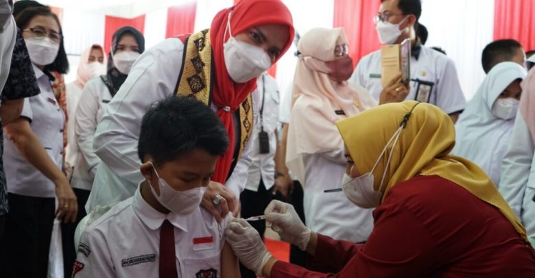 SMARTNEWS.ID – Wali Kota Bandar Lampung, Eva Dwiana menghadiri penandatanganan komitmen sekaligus membuka acara pencanangan Bulan Imunisasi Anak Nasional (BIAN) tahun 2022 di SDN 1 Rawa Laut, Kecamatan Enggal.