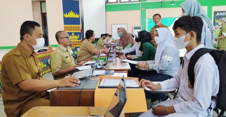 Pendaftar di SMKN 2 Bandar Lampung, saat mendatangi panitia PPDB, guna melakukan verifikasi ulang berkas yang telah diunggah di laman PPDB, Senin (27/6/2022). IST